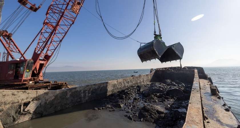 İzmir Körfezi’ndeki tarama ve temizlik faaliyetleri hakkında bilgi veren yüklenici firma DGN Denizcilik’te görevli inşaat mühendisi Kadir Arali, “Yaklaşık bir aydır Körfez’in kuzey aksında dip tarama çalışmalarına devam ediyoruz. Buraya geldiğimizde suyun derinliği 0 metreden yaklaşık 3.5 metreye kadar gidiyordu. Karaya doğru ilerleyerek hedefimiz dibi 200 metre genişlik 4-4 buçuk metre derinliğe çıkarmak. Karaya doğru gittikçe artık su derinliği yok oluyor. Flamingoların olduğu noktada kuşlar yuva yapabilecek konumda.  Şu ana kadar yaptığımız çalışmalarda 60 bin ton malzeme çıkardık. Bu da 55 gemiye tekabül ediyor. Şu an karaya uzak olduğumuz için sadece dipte çamur görüyoruz. Karaya yaklaştıkça çeşitli evsel atık malzemelerini de görüp temizleyeceğiz” dedi.