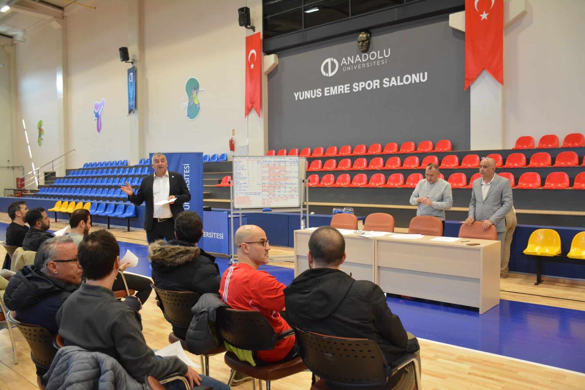 Anadolu Üniversitesi Sağlık, Kültür ve Spor Daire Başkanlığı tarafından düzenlenen “40. Geleneksel Bahar Etkinlikleri” kapsamında gerçekleştirilecek olan spor müsabakalarının kura çekimi, Yunus Emre Spor Salonu’nda yapıldı. Kura çekimine SKS Spor İşleri Şube Müdürü Öğr. Gör. Hakan Sivriservi ile fakülte, yüksekokul ve meslek yüksekokullarının spor temsilcileri katıldı.