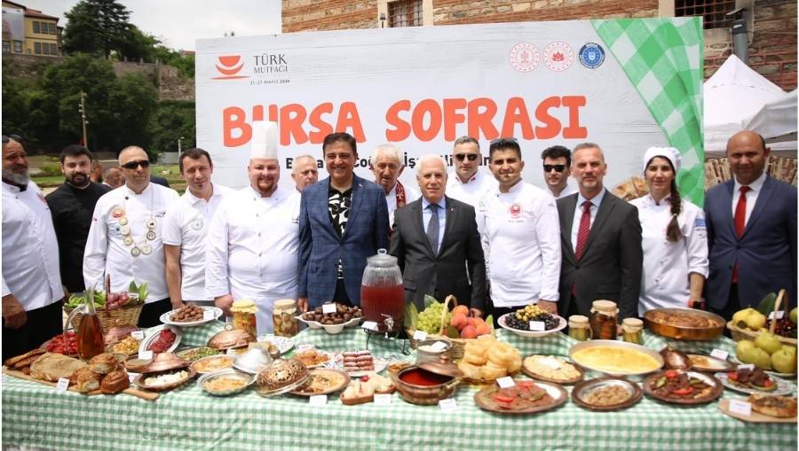 Cumhurbaşkanlığı ile Kültür ve Turizm Bakanlığı’nın koordinesinde 21-27 Mayıs tarihlerinde düzenlenen ‘Türk Mutfağı Haftası’, Bursa’da da renkli etkinliklerle kutlandı. Bursa Büyükşehir Belediyesi tarafından Bursa Valiliği koordinasyonunda düzenlenen ‘Bursa Kadın Kooperatifleri ile Bursa Mutfağı’ programı, Tarihi Çarşı ve Hanlar Bölgesi İpek Han Meydanı’nda vatandaşların yoğun ilgisiyle yapıldı. Kentin farklı ilçelerinde faaliyet gösteren kadın kooperatifleri ve kadın derneklerinin stant açtığı etkinlikte, coğrafi işaretli ürünler ve yöresel lezzetler tanıtıldı. Bursa’nın ünlü şeflerinin de deneyimlerini paylaştığı programda, birbirinden renkli ve lezzetli görüntüler ortaya çıktı.