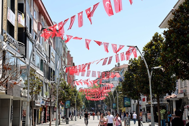 SAKARYA- Sakarya Büyükşehir Belediyesi Cumhurbaşkanı Recep Tayyip Erdoğan’ın “Türkiye’nin her sokağı, her hanesi Ay Yıldızlı bayrağımızla donatılmalıdır” çağrısı üzerine şehri al-yıldızlı Türk bayraklarıyla donattı.