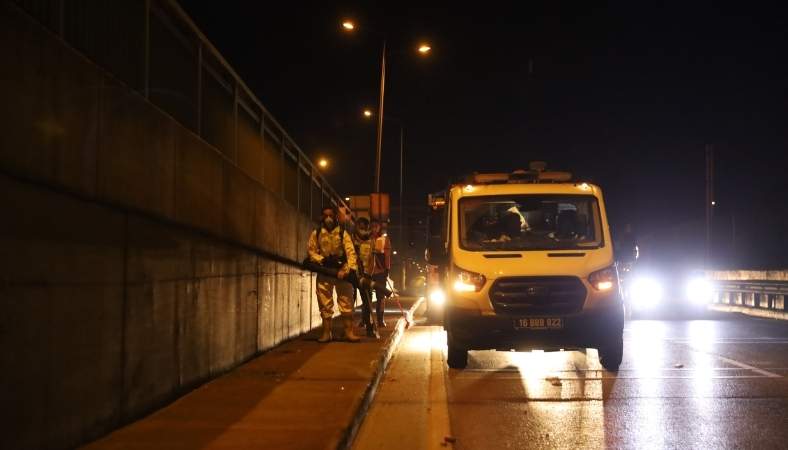 Bursa’nın daha temiz ve estetik bir kent olması amacıyla çalışmalarını sürdüren Büyükşehir Belediyesi ekipleri, trafiği olumsuz etkilememek adına temizlik çalışmalarını gece saatlerinde sürdürüyor.